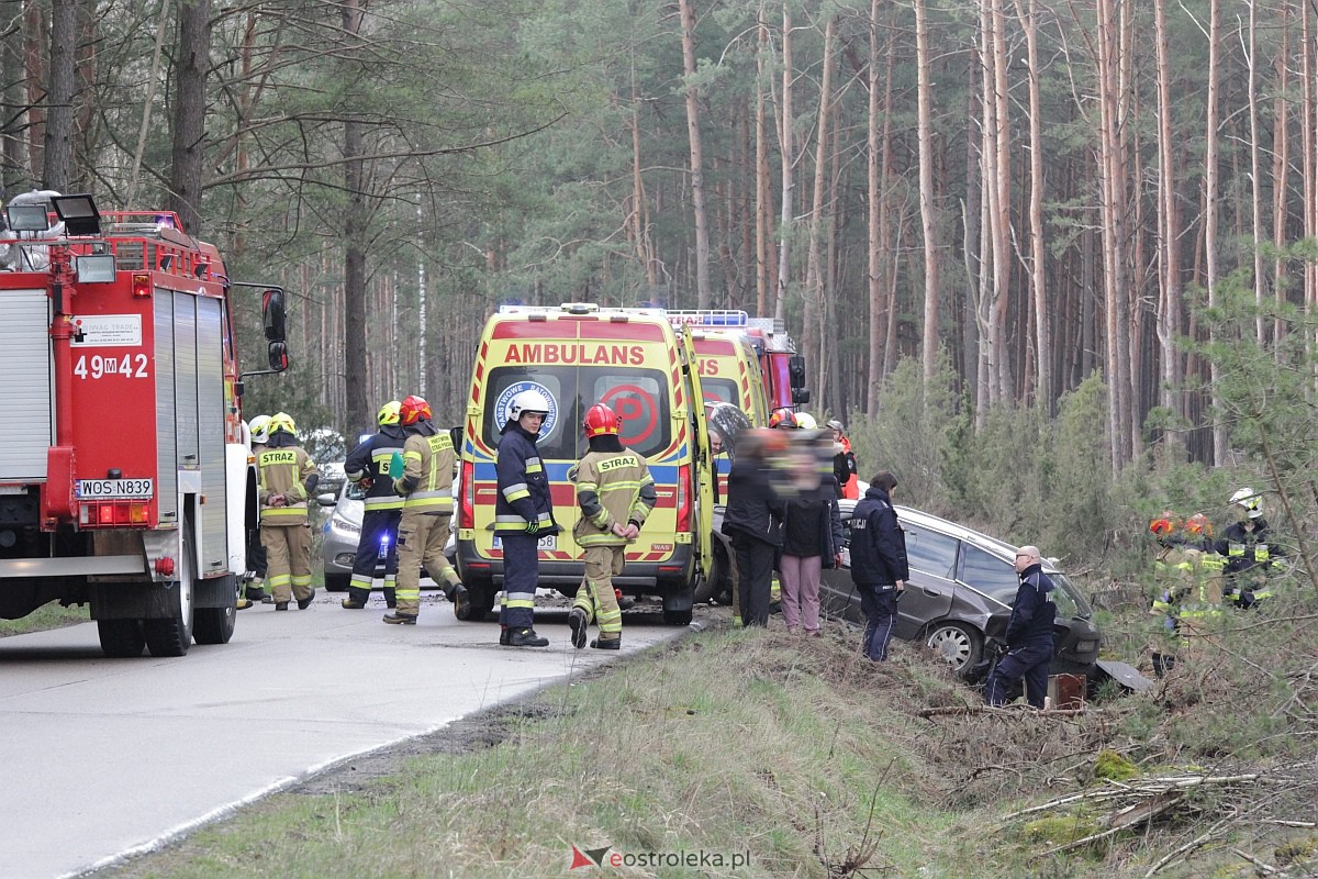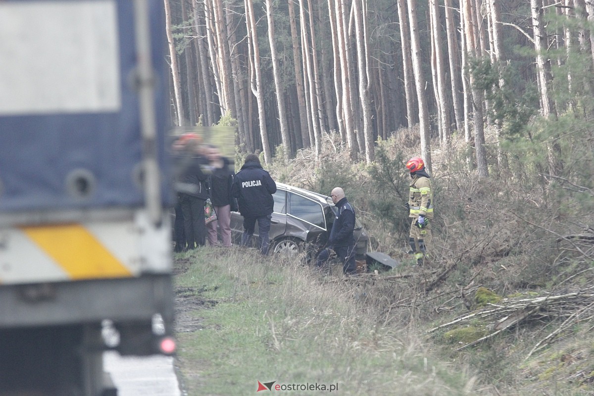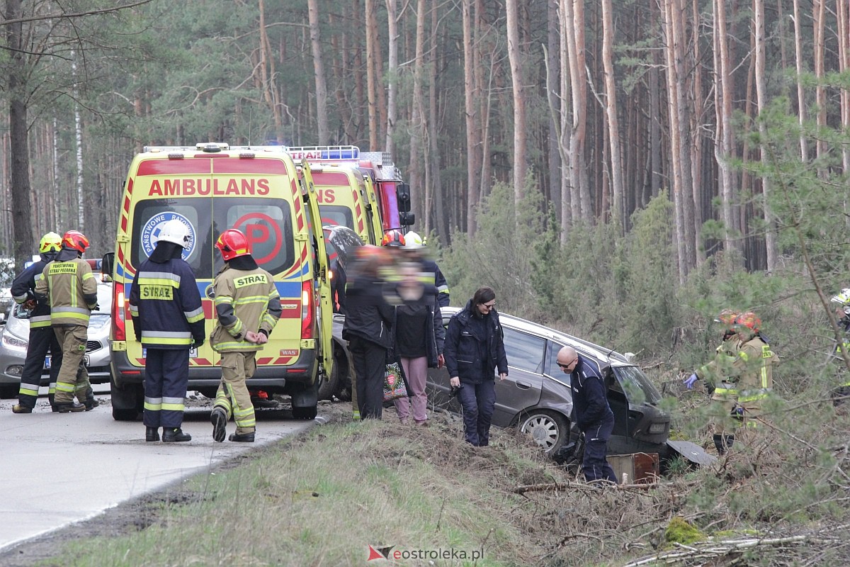 Trzy kobiety podróżowały autem, które wypadło z drogi na trasie Kadzidło - Gleba. Jednej z nich strażacy musieli pomóc wydostać się z rozbitego samochodu.