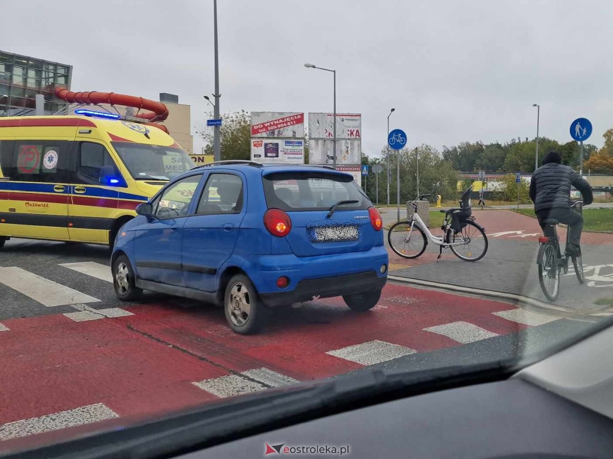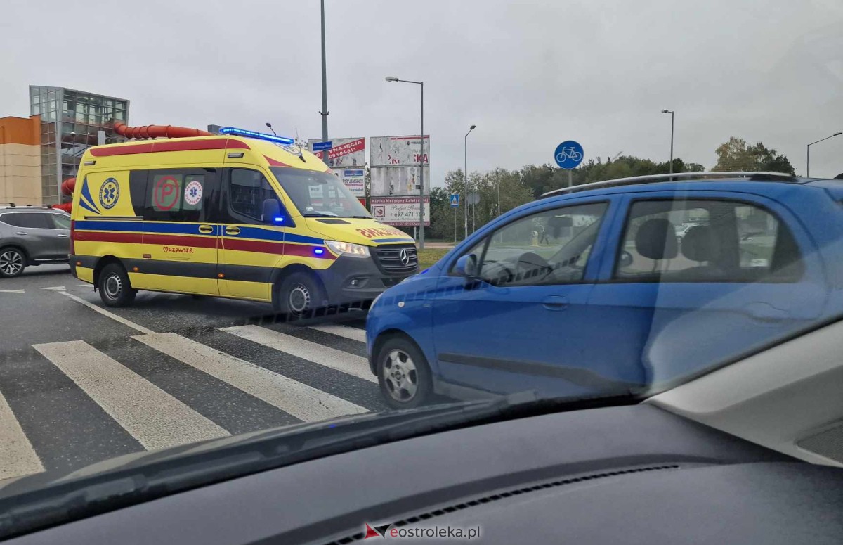 Wypadek na Witosa w Ostrołęce. Pod koła osobówki wpadła kierująca jednośladem. Kobieta trafiła do szpitala.