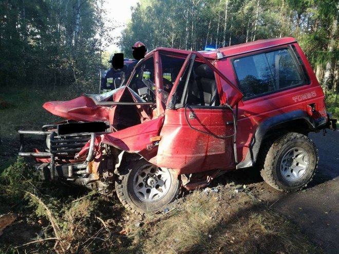fot. OSP GoworowoDo wypadku doszło w poniedziałek, 21 sierpnia około godziny 17:00 w miejscowości Cisk na na lokalnej drodze łączącej Lipiankę z Goworowem.. Jak ustalili funkcjonariusze policji, kierujący terenowym mitsubishi 37-letni mieszkaniec powiatu ostrołęckiego, z niewyjaśnionych przyczyn zjechał z drogi i uderzył w drzewo.