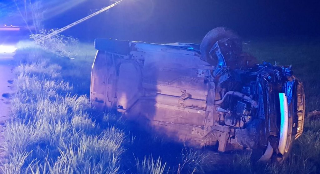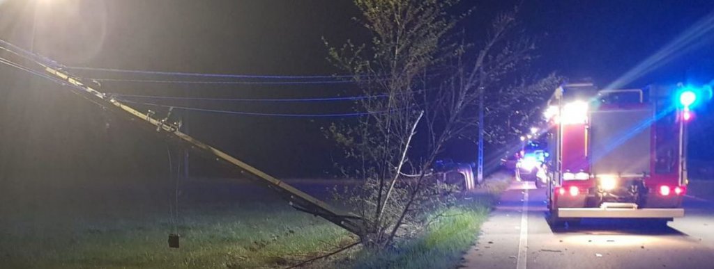 Po przyjeździe policjantów na miejsce zastano rozbity pojazd leżący na boku, „ścięty” słup energetyczny oraz osoby postronne, które pomagały kierowcy auta i jego pasażerom wydostać się z pojazdu.