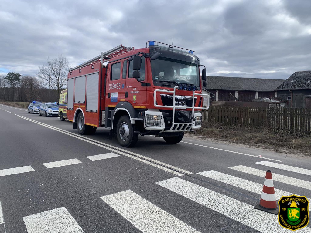 Z policyjnych ustaleń wynika, że do zdarzenia doszło z winy kierującej peugeotem, która nie ustąpiła pierwszeństwa przejazdu kierowcy opla. W wyniku zdarzenia poszkodowana została jedna osoba. Na miejscu w akcji ratunkowej uczestniczyły zastępy strażackie z Baranowa i Ostrołęki, policja i zespół medyków z Ostrołęki.
