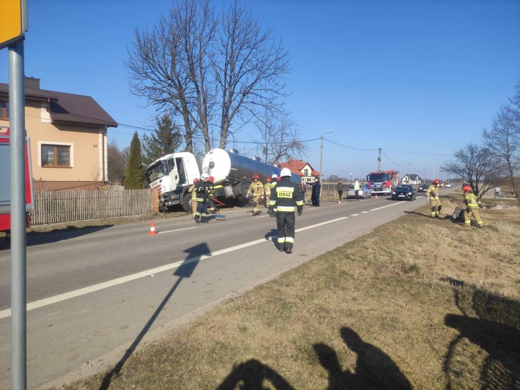 Około godziny 13:40 kierujący cysterną przewożącą mleko stracił panowanie nad pojazdem, z niewyjaśnionych przyczyn zjechał z drogi pokonując przepust wodny, po czym zatrzymał się na ogrodzeniu jednej z prywatnych posesji.