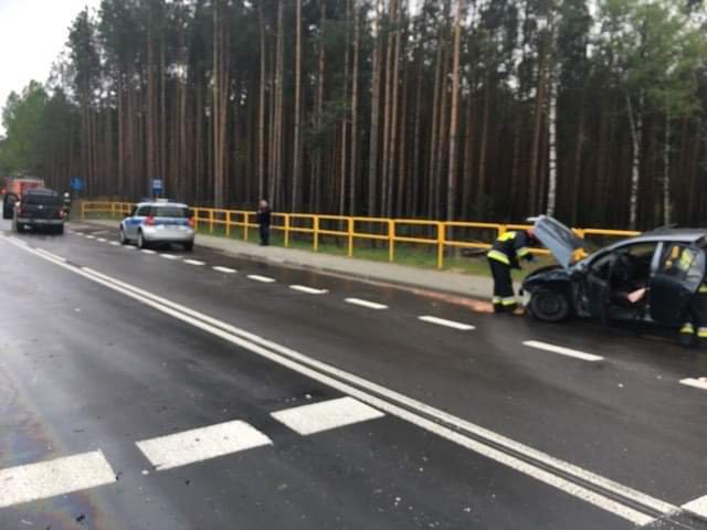 Kierująca skodą włączała się do ruchu z drogi leśnej prowadzącej od Kobylina. 33-latek kierujący nissanem poruszał się od strony Pasiek w kierunku Długosiodła. W wyniku zderzenia kierująca skodą doznała obrażeń i została zabrana do szpitala.