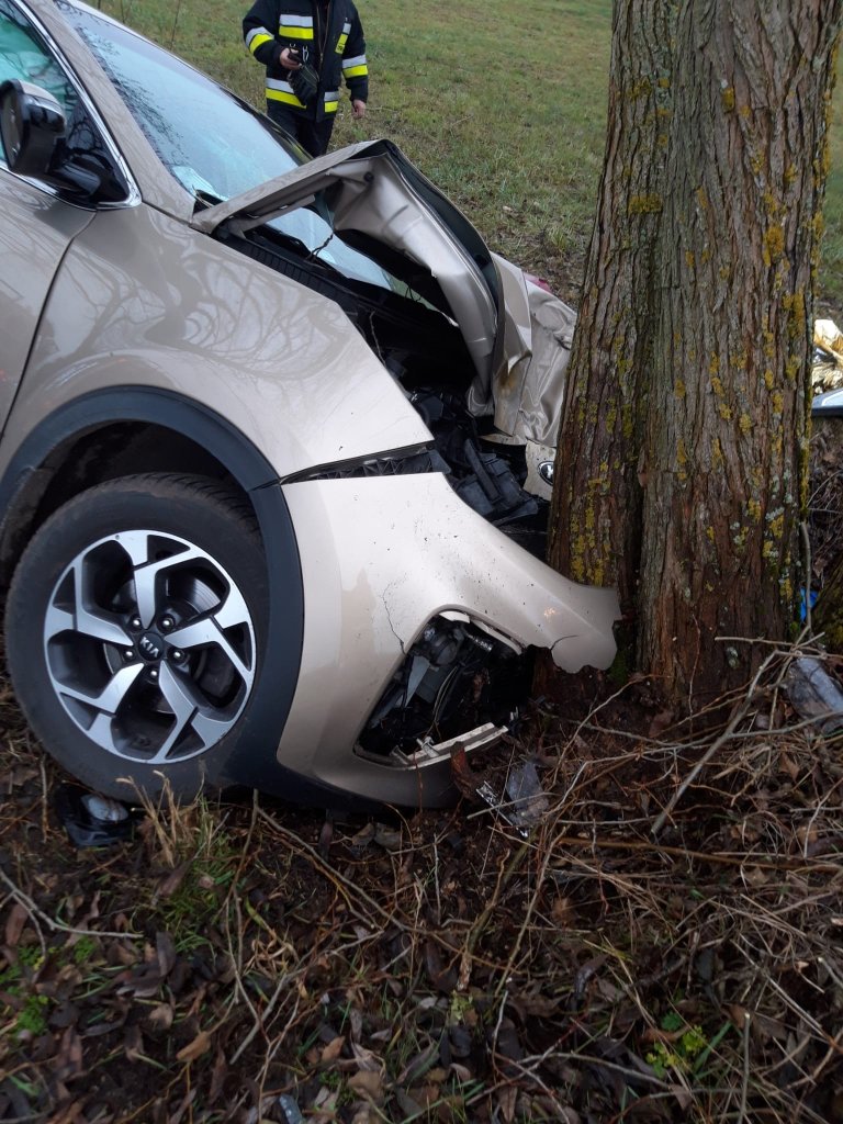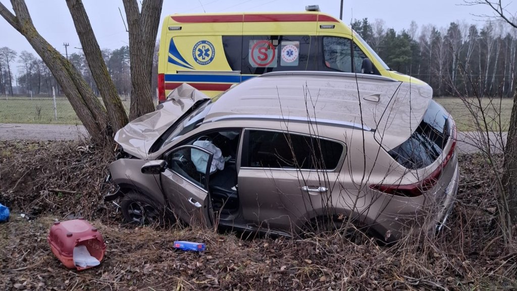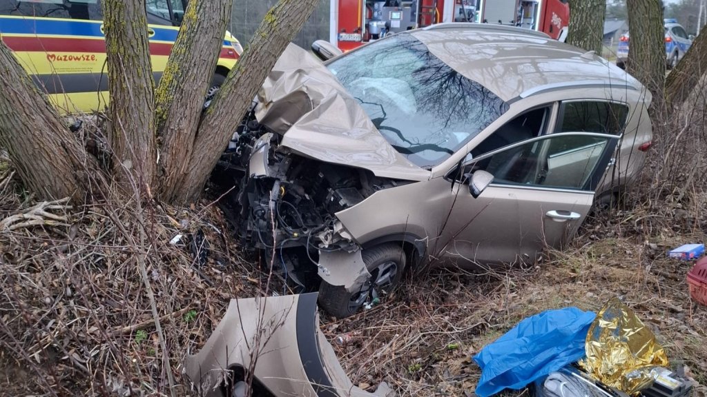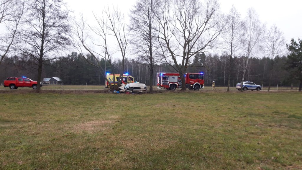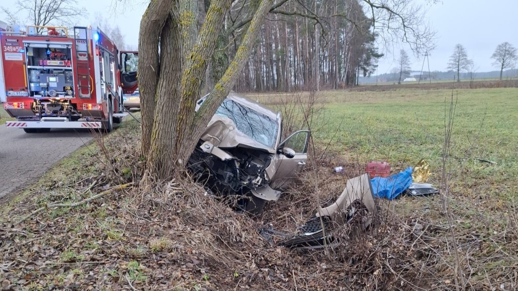 Kierująca samochodem marki Kia 55-letnia mieszkanka powiatu ostrołęckiego, podróżująca sama, straciła panowanie nad pojazdem, zjechała na pobocze i uderzyła w przydrożne drzewo. Wrak auta zaczął dymić, co wywołało dodatkowe zagrożenie.