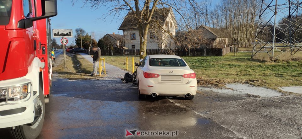 Dziś o poranku w okolicach Żabina doszło do niebezpiecznego wypadku. Kierująca infiniti wpadła w poślizg i z impetem uderzyła w drzewo. Kobieta doznała obrażeń, pomocy na miejscu udzielali jej ratownicy z Ostrołęki.