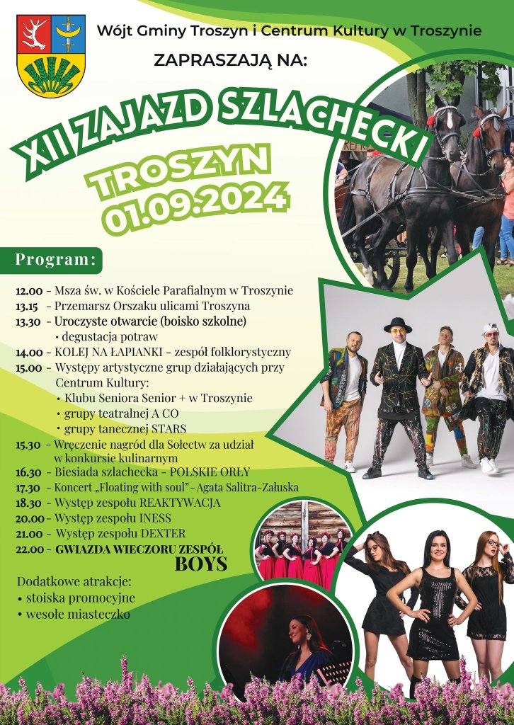Troszyn szykuje się na wyjątkowe wydarzenie! 1 września 2024 roku odbędzie się już XII edycja Szlacheckiego Zjazdu, który co roku przyciąga rzesze mieszkańców i turystów. Tegoroczna impreza zapowiada się jeszcze bardziej wyjątkowo, ponieważ gwiazdą wieczoru będzie kultowy zespół Boys!