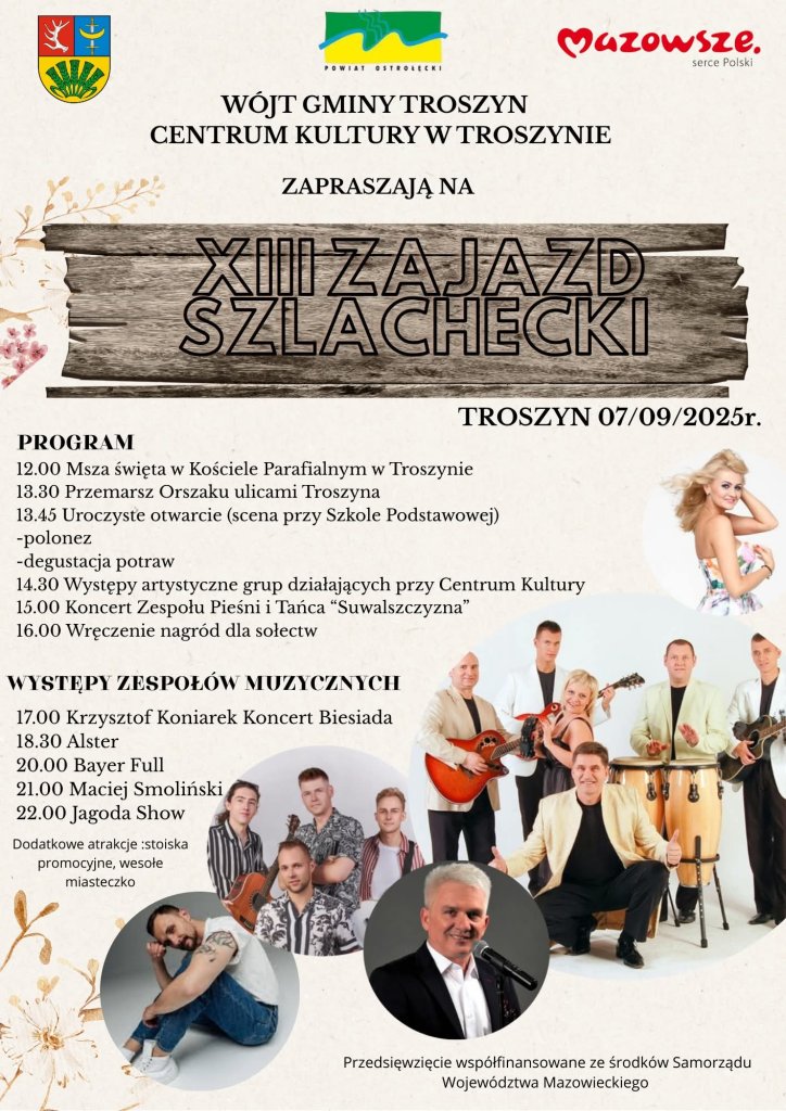 Troszyn szykuje się na wyjątkowe wydarzenie, które połączy tradycję z nowoczesną rozrywką. 7 września 2025 roku odbędzie się XIII Zajazd Szlachecki, który jest zarazem dorocznym świętem dożynkowym. Będzie to idealna okazja do wspólnego celebrowania zakończenia żniw i integracji lokalnej społeczności.