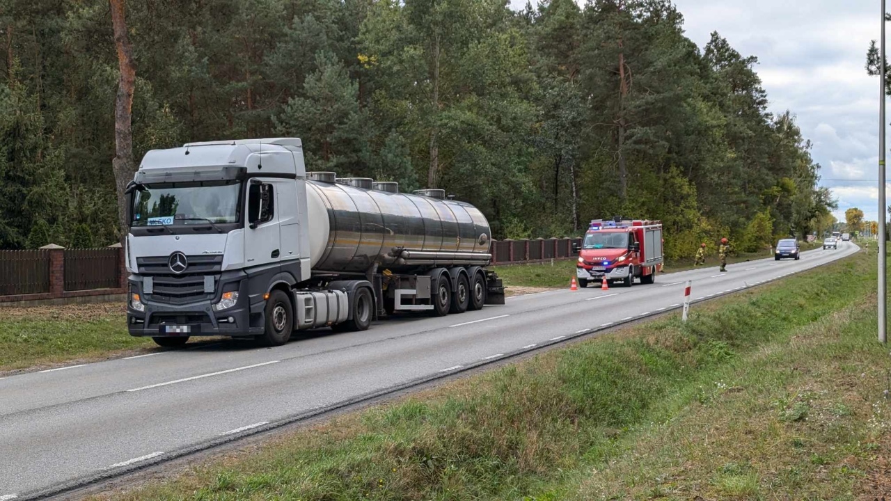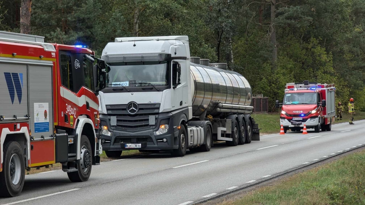 W wyniku zdarzenia poszkodowany został kierujący ciężarówką transportującą mleko.