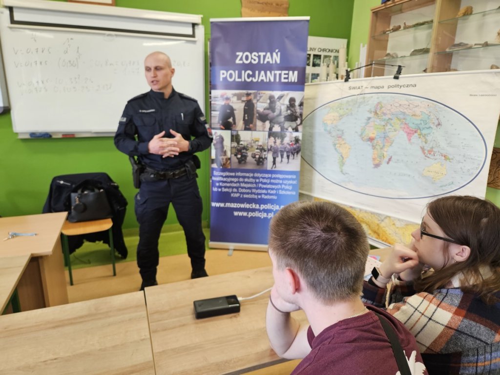 Policjanci z Komendy Miejskiej Policji w Ostrołęce kontynuują cykl spotkań z uczniami klas maturalnych promujących ich służbę. Tego rodzaju spotkania mają, m.in. na celu pomóc młodzieży w wyborze ich dalszej drogi zawodowej.
