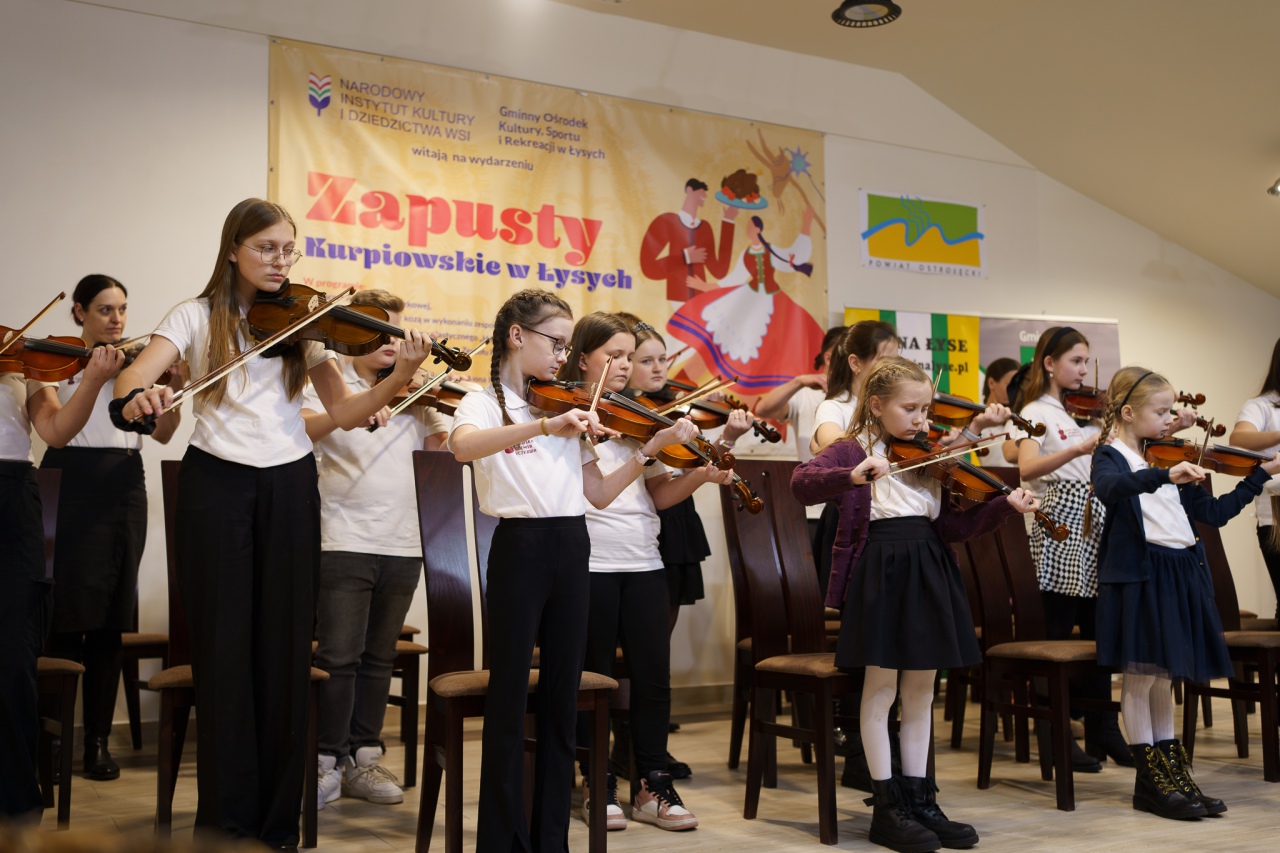 Pierwszą część wydarzenia wypełnił koncert Kurpiowskiej Akademii Smyczkowej. Młodzi muzycy zaprezentowali kolędy i utwory ludowe, zachwycając publiczność swoim talentem i umiejętnościami. Następnie Paweł Dąbkowski, kierownik Akademii, wygłosił miniwykład o kurpiowskich instrumentach, prezentując ich brzmienie na żywo.