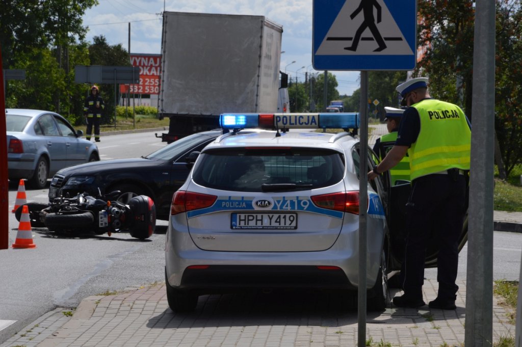 Kierująca audi 25-letnia mieszkanka powiatu ostrołęckiego, wyjeżdżając z ulicy Mazowieckiej, nie ustąpiła pierwszeństwa przejazdu kierującemu motocyklowi yamaha 42-letniemu mieszkańcowi powiatu łomżyńskiego. Mężczyzna nie doznał poważnych obrażeń. Uczestnicy kolizji byli trzeźwi