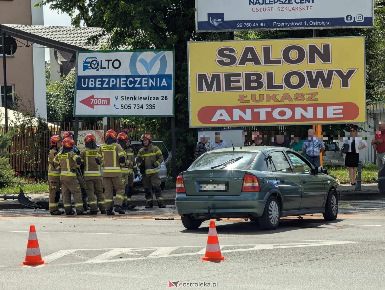 Zderzyły się dwa samochody, a jeden z nich po zderzeniu uderzył jeszcze w billboard stojący przy skrzyżowaniu. Na miejscu pojawili się strażacy, pogotowie ratunkowe i policja.