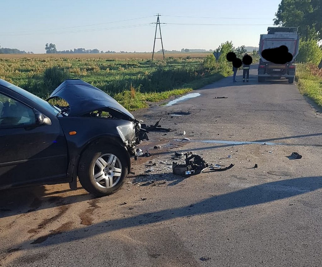Do wypadku doszło w miejscowości Jastrzębiec (powiat przasnyski). W wyniku zderzenia osobowego vw z ciężarówką poszkodowane zostały dwie osoby.