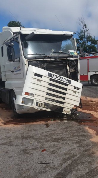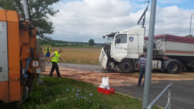 Z wstępnych ustaleń wynika, że kierowca śmieciarki wymusił pierwszeństwo przejazdu na prawidłowo jadącym od strony Różana samochodzie ciężarowym.