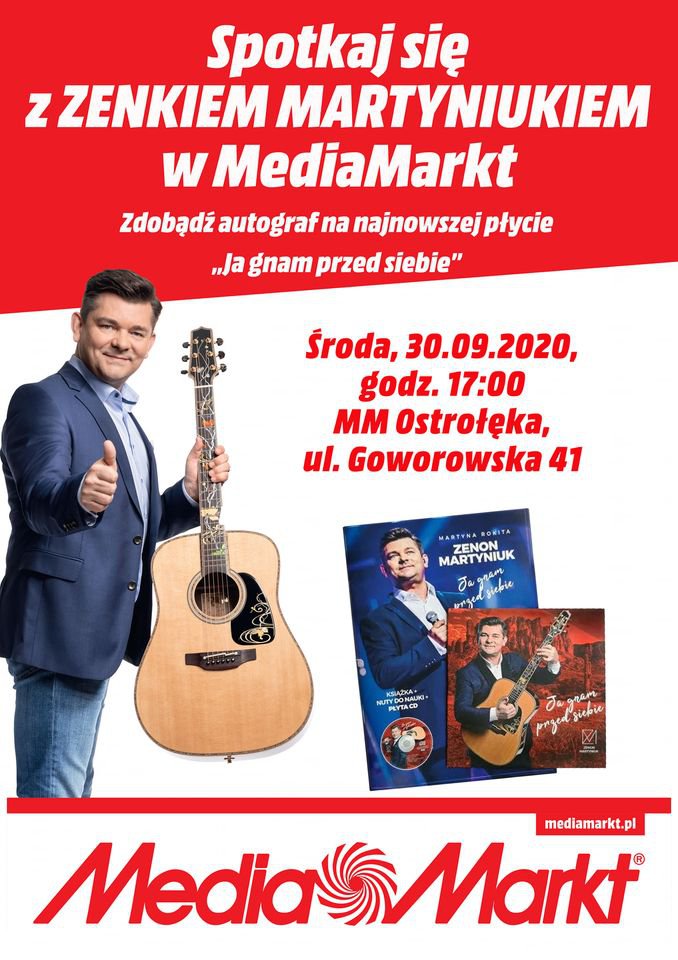 W najbliższą środę 30 września w Ostrołęce spotkać będzie można Zenka Martyniuka! Król muzyki disco polo przyjedzie do sklepu Media Markt w Bursztynowa Park. To idealna okazja, by wziąć autograf na najnowszej płycie "Ja gnam przed siebie".
