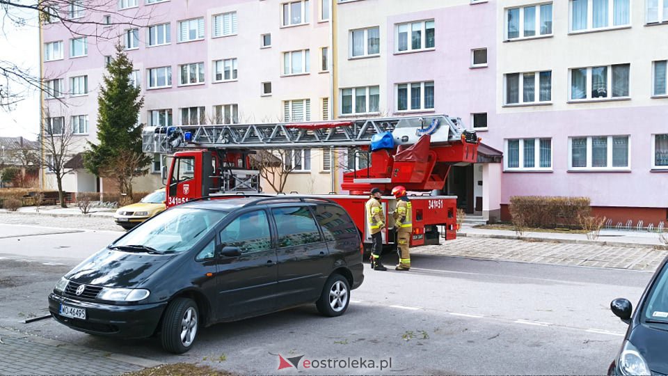 Z bloku przy ulicy Dzieci Polskich w Ostrołęce porywisty wiatr zerwał dach. Poszycie zwisa nad oknami, na miejscu pracują strażacy.
