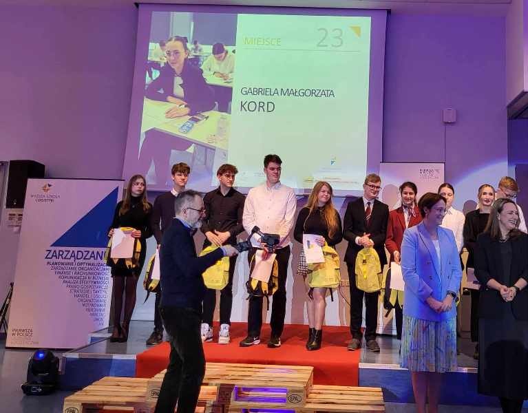 W prestiżowym konkursie, w którym wzięło udział 5435 uczniów szkół ponadpodstawowych z całego kraju, uczniowie Zespołu Szkół Zawodowych Nr 1 im. Józefa Psarskiego w Ostrołęce wykazali się niezwykłą wiedzą i umiejętnościami, zdobywając wysokie miejsca w ścisłej czołówce. W finale XV Ogólnopolskiej Olimpiady Logistycznej znaleźli się: Urszula Ropiak z klasy IVP, która zajęła zaszczytne 6. miejsce, Gabriela Małgorzata Kord z klasy V PP – 23. miejsce, Jakub Krupa z klasy V PP – 27. miejsce, Bartłomiej Stepnowski z klasy V PP - 64. miejsce. Tę radosną informację ogłoszono 5 kwietnia 2024r. podczas Finałowej Gali XV Ogólnopolskiej Olimpiady Logistycznej w Wyższej Szkole Logistyki w Poznaniu.
