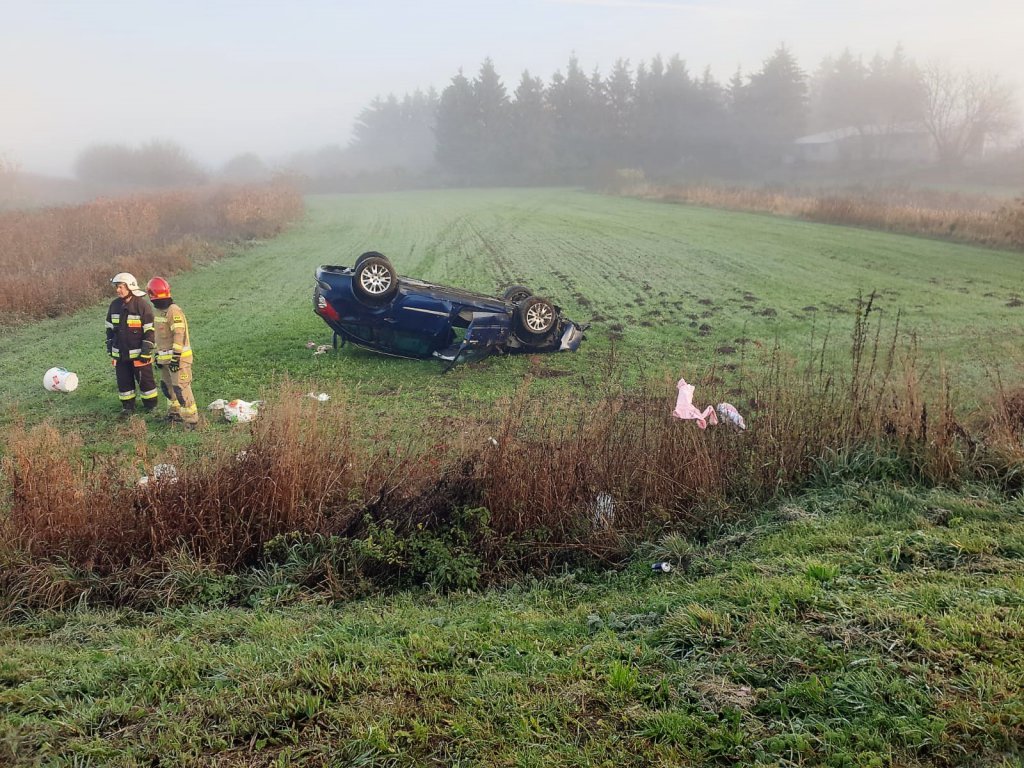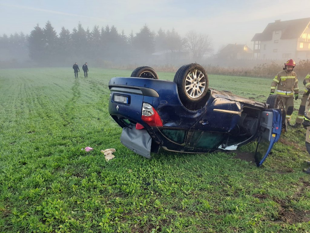 W chwili przyjazdu jednostek ochrony przeciwpożarowej okazało się, że pojazd osobowy leży na dachu w polu, tuż przy rzece. Na miejscu podróżującego kierowcy nie było, ani innych osób. Działania strażaków polegały na zabezpieczeniu miejsca zdarzenia, odłączeniu instalacji elektrycznej w uszkodzonym aucie oraz przeszukaniu terenu wokół wypadku – nikogo nie odnaleziono.