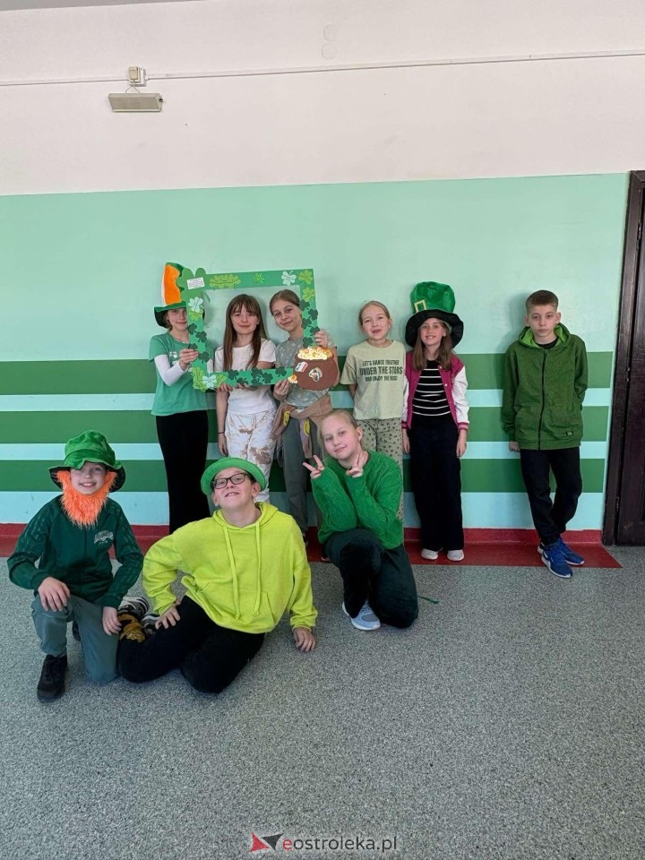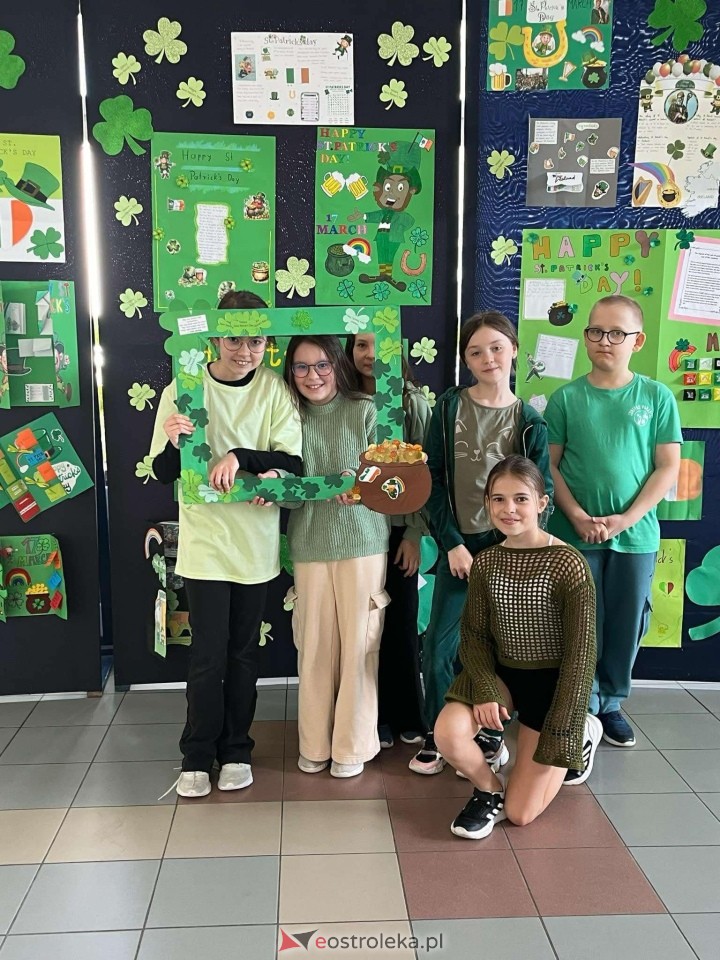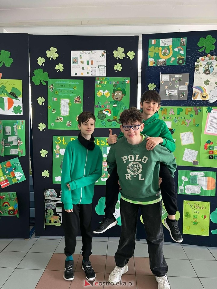 Tego dnia szkołę opanował kolor zielony – zarówno w strojach uczestników, jak i dekoracjach. Na lekcjach języka angielskiego uczniowie zgłębiali historię św. Patryka, oglądali filmy o Irlandii i brali udział w konkursach. Najmłodsi (klasy I-III) świetnie bawili się, kolorując skrzata Leprechauna oraz szukając ukrytych w klasach trójlistnych koniczynek – jednego z symboli Irlandii. Nie zabrakło również kreatywnych prac, takich jak lapbooki, które uczniowie wykonali z dużym zaangażowaniem.