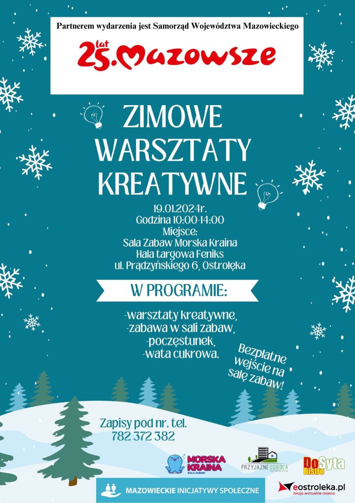 Już 19 stycznia w Sali Zabaw Morska Kraina w Ostrołęce odbędą się Zimowe Warsztaty Kreatywne! Znakomita zabawa gwarantowana.
