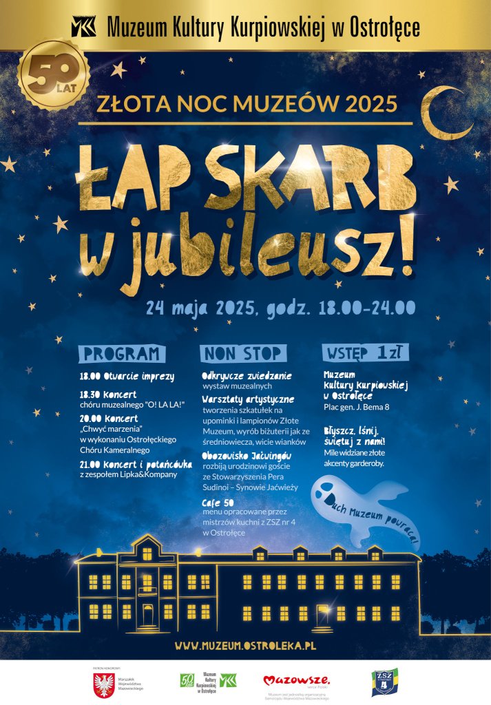 Tegoroczna edycja, nazwana "Złotą Nocą Muzeów", zaplanowana została na 24 maja 2025 roku w godzinach od 18:00 do 24:00. Wydarzenie odbędzie się pod hasłem „Łap skarb w jubileusz!" i będzie połączone z obchodami 50-lecia istnienia Muzeum Kultury Kurpiowskiej. Motywem przewodnim będzie poszukiwanie muzealnych skarbów, co ma na celu uświadomienie zwiedzającym wartości zbiorów oraz spojrzenie na eksponaty jako na cenne źródło wiedzy.
