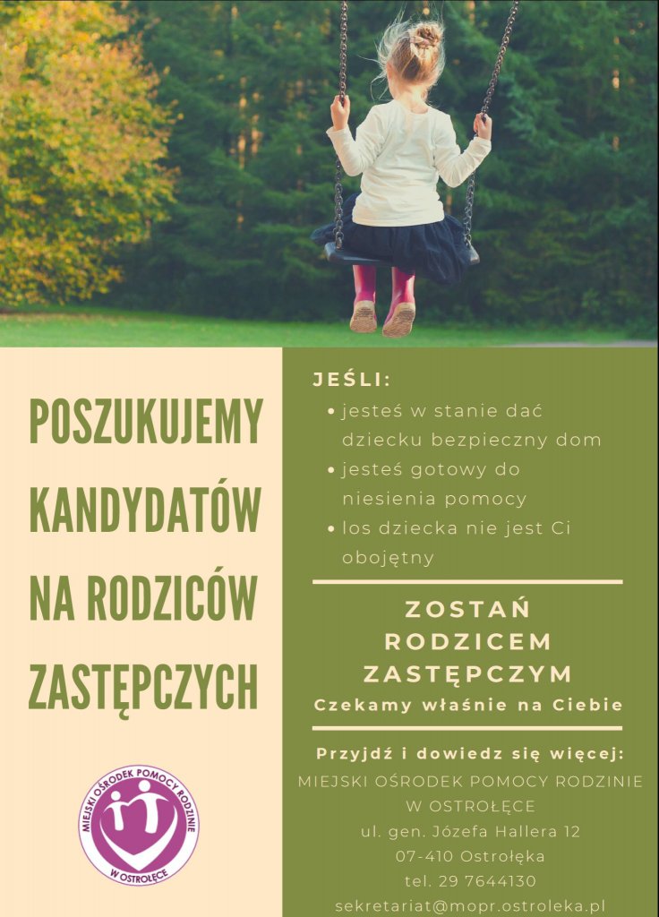 Podstawowym prawem dziecka jest prawo do wychowania i dorastania w rodzinie. W sytuacji, gdy dziecko pozbawione jest tej naturalnej ochrony, państwo jest zobowiązane do zapewnienia dziecku opieki, co gwarantuje mu konstytucja. W dniu 24 maja 2006 roku Sejm Rzeczypospolitej polskiej ustanowił 30 maja Dniem Rodzicielstwa Zastępczego. W związku z powyższym Miejski Ośrodek Pomocy Rodzinie w Ostrołęce chciałby zwrócić uwagę na konieczność pozyskiwania kandydatów do pełnienia funkcji rodziny zastępczej.