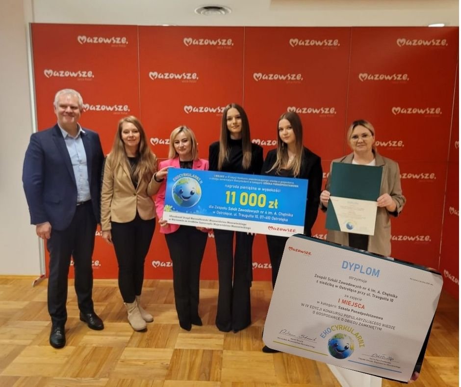 Zespół Szkół Zawodowych nr 4 im. Adama Chętnika w Ostrołęce zdobył pierwsze miejsce w wojewódzkim konkursie „Ekocyrkularni”. Ostrołęcka placówka okazała się bezkonkurencyjna w kategorii szkół ponadpodstawowych, pokonując liczne zgłoszenia z całego Mazowsza.