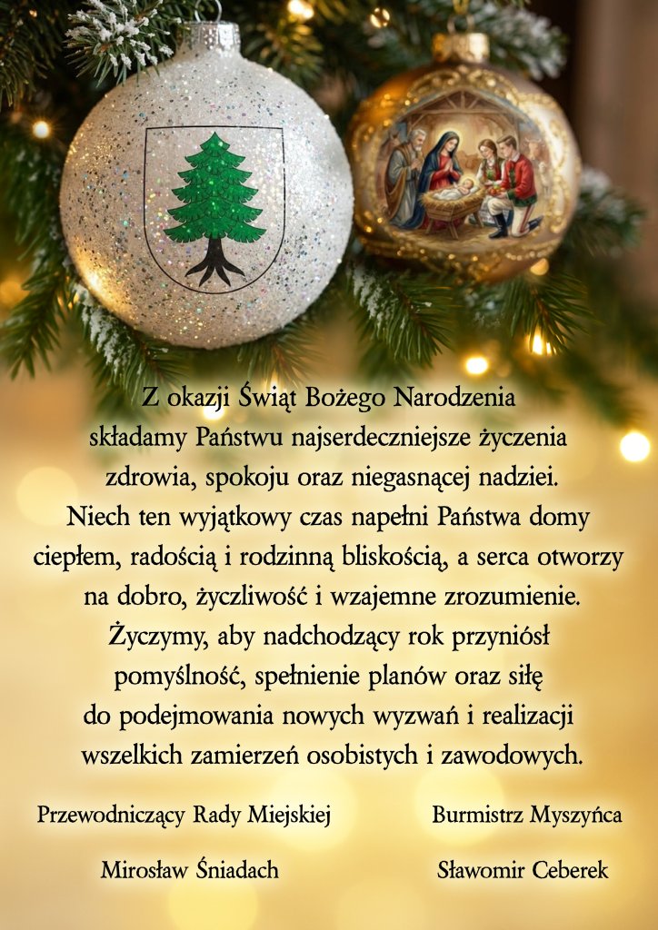 Życzenia Bożonarodzeniowe od władz miasta Myszyniec