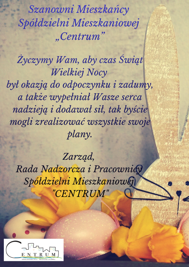 Życzenia Wielkanocne od Spółdzielni Mieszkaniowej "Centrum"