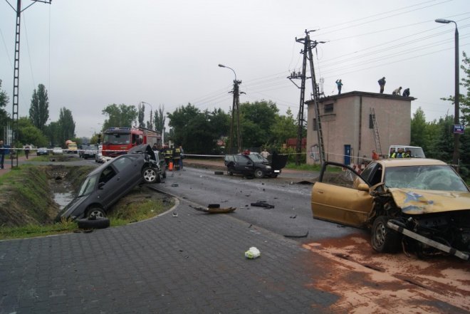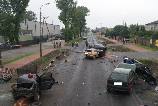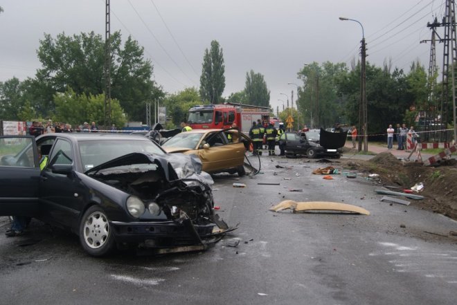 Bardzo groźnie wyglądające zdarzenie miało miejsce dziś przed godzina 11. na drodze wojewódzkiej nr 719 na ul. Jaktorowskiej w Żyrardowie. W sumie zderzyło się pięć pojazdów. Wszystkie to samochody osobowe, w czterech z nich podróżowali sami kierujący, a w jednym tylko kierujący nie jechał sam. W wyniku tego wypadku do szpitali przewiezionych zostało cztery osoby, w tym jedna nieprzytomna. Trzy osoby to kierujący, jedna to pasażer Audi A3. Jednak jak twierdzą policjanci uczestnicy zdarzenia mieli wiele szczęścia, że nikt nie zginął oraz, że nikt nie odniósł większych obrażeń. Ponieważ życiu i zdrowiu poszkodowanych nie zagraża już niebezpieczeństwo. Wszyscy kierujący zostali poddani badaniu na zawartość alkoholu w wydychanym powietrzu, czterech było trzeźwych. Co do stanu trzeźwości ostatniego trwają czynności wyjaśniające czy był on kierującym czy pasażerem. Jednak aby to ustalić potrzeba czasu ze względu na fakt nietrzeźwości tej osoby oraz, że druga osoba jadąca tym pojazdem nadal znajduje się w szpitalu. Jej stan trzeźwości również zostanie ustalony na podstawie pobranej krwi do badań.