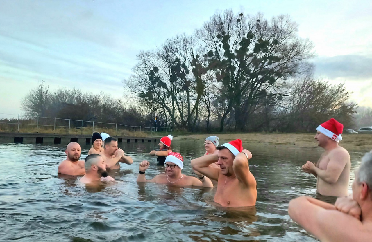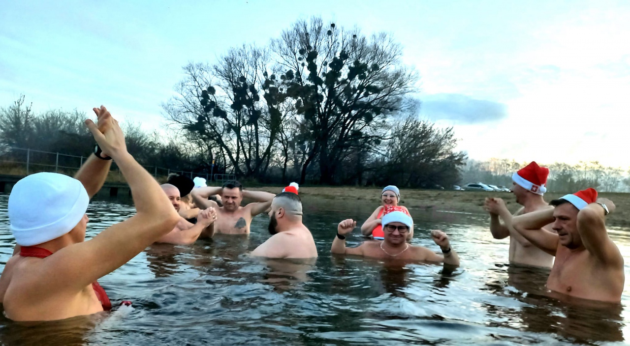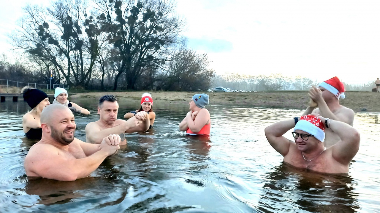 Jak tegoroczne święta spędzały ostrołęckie morsy? Prosto zza wigilijnego stołu ruszyli do lodowatej Narwi.